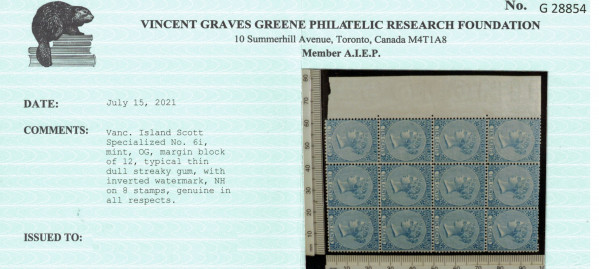 British Columbia #6i VF Mint Block Of Twelve **With Certificate**