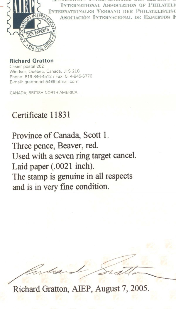 Canada #1 Extra fine, used, huge margins, laid paper, a used gem, comes with certificate. Read more