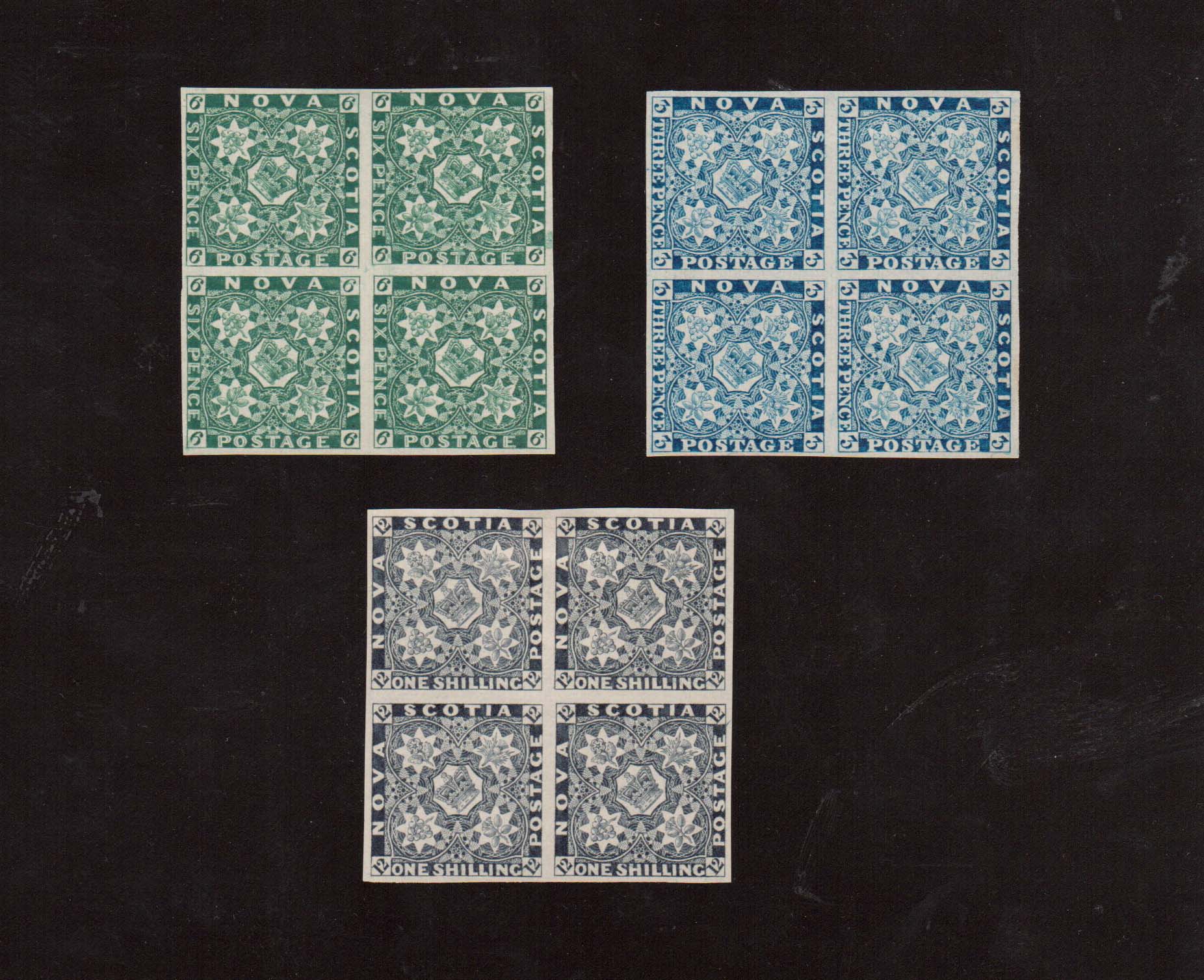 Nova Scotia #2RP #5RP #7RP Extra Fine Mint Proof Reprint Blocks, Unused (No Gum), Showpiece Set. Catalog: $2000.00+ Read more