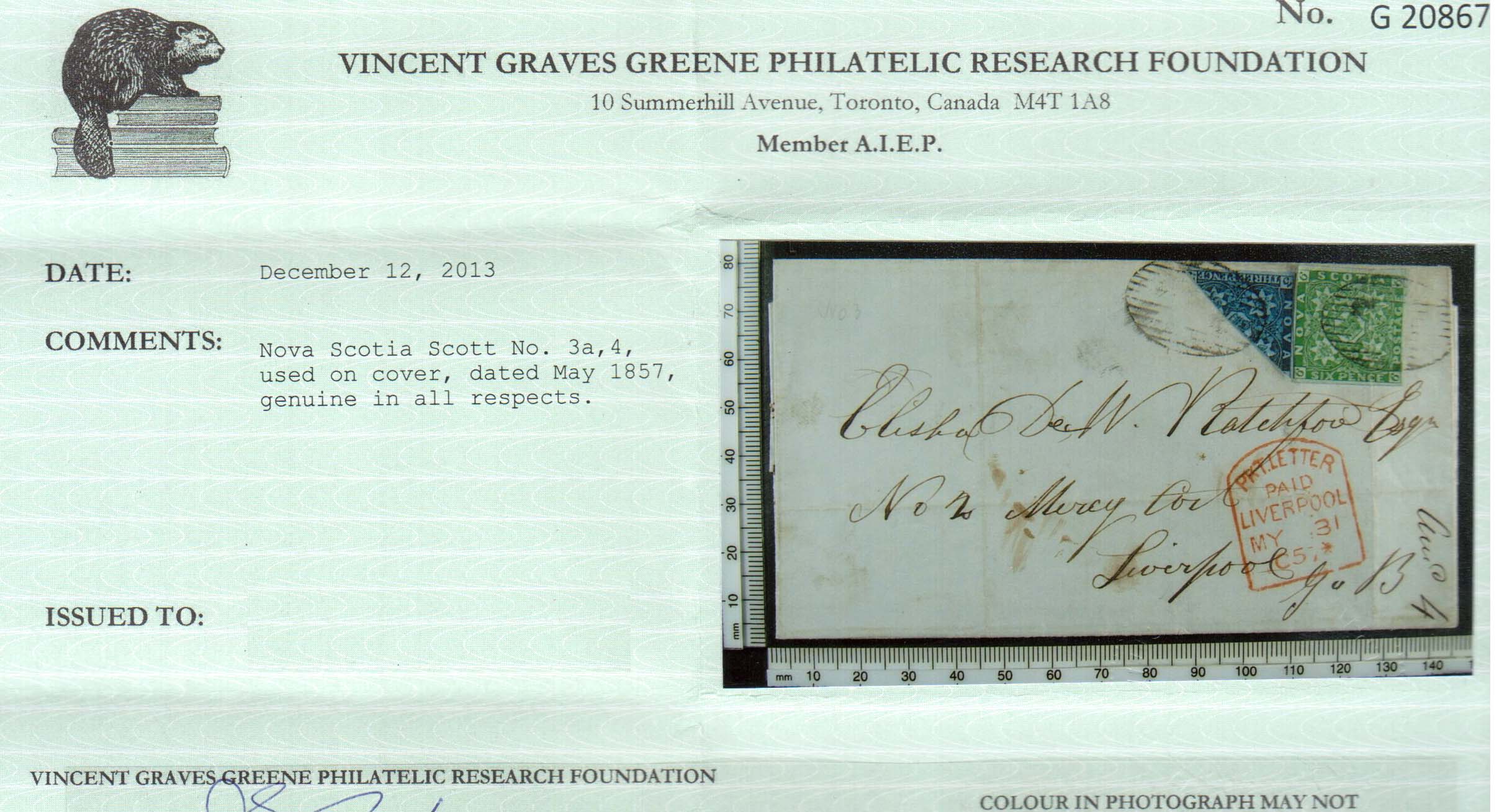 Nova Scotia #3a & #4 VF Used Bisect On Cover **With Certificate**