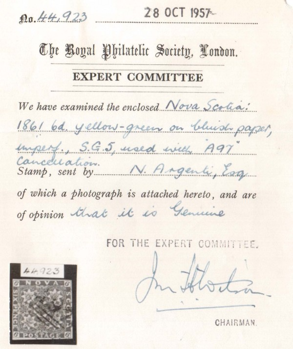 Nova Scotia #4 Very Fine Used With Rare A97 Cancel, With Certificate. Read more